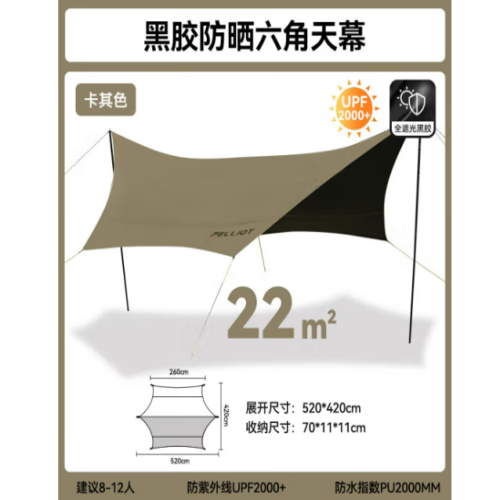 伯希和(PELLIOT) 伯希和枭超轻六角天幕 16202720卡其色 中性