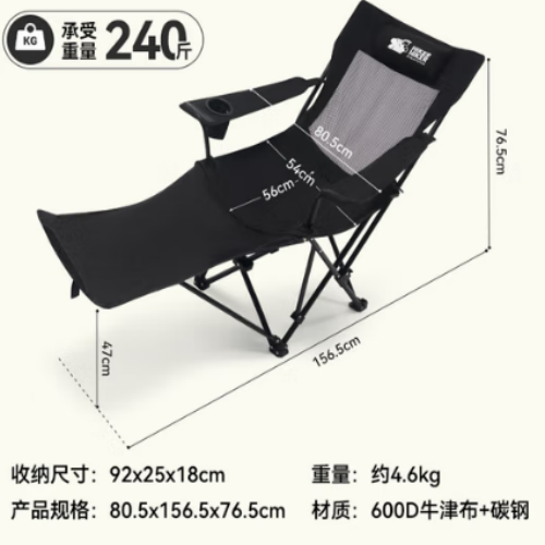伯希和(PELLIOT) HIKER HIKER可调节折叠网布躺椅 16405742曜石黑 中性