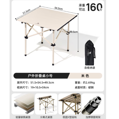 骆驼(CAMEL) 户外折叠桌小号 173SL03012A米色 中性